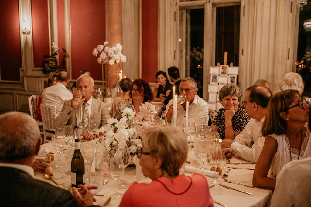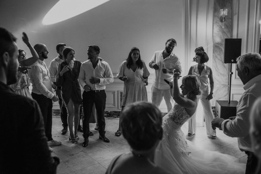 Après la cérémonie, il y avait une soirée remplie de surprises. Fanny, grande admiratrice de Céline Dion, a pris le micro. Sa voix a résonné dans le château, touchant le cœur de tous les invités. J’ai pu immortaliser ces moments de chant, de rires et de danse. Ce furent des instants que nous avons tous partagés, une réunion de joie et de bonheur.