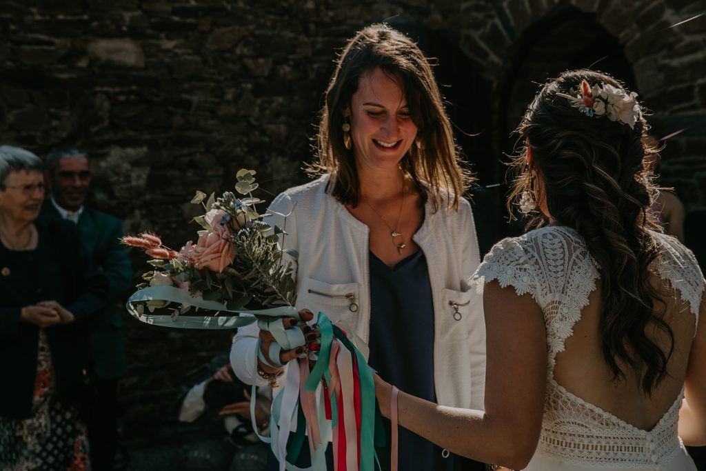Après la cérémonie, et le repas du midi (typique en Bretagne des mariages de journée et ont adorent), les invités ont pu profiter d’une visite de la cave à vin du château, avec une présentation des différentes cuvées par l’hôte, suivie d’une dégustation. C’était l’occasion parfaite de célébrer l’amour d’Anne et Max dans ce cadre intimiste chaleureux de grands espace de verdure, une salle de réception chaleureuse de bois et lumineuse…